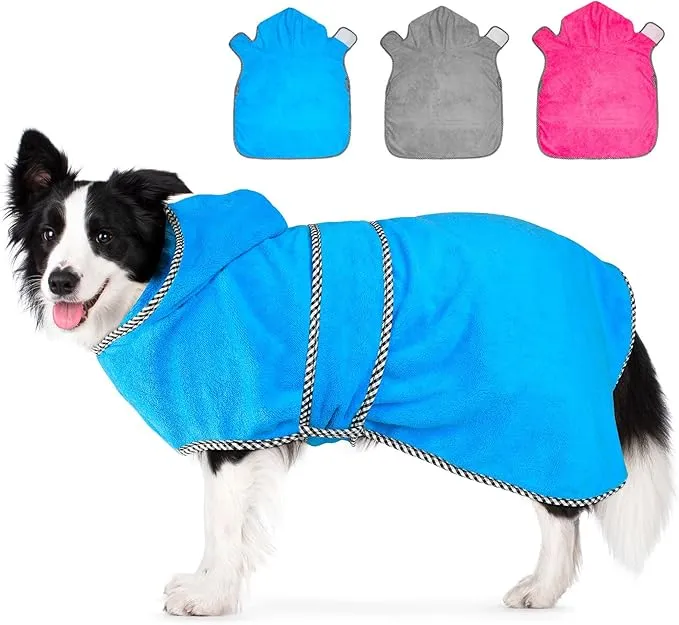 【Super Absorbent & Fast Drying】– With our dog bathrobe, drying your furry friend after a bath or a swim will be a breeze. This dog bathrobes are like dog towels for drying dogs is made of highly absorbent fabric that quickly wicks away water, leaving your dog feeling fresh and dry.